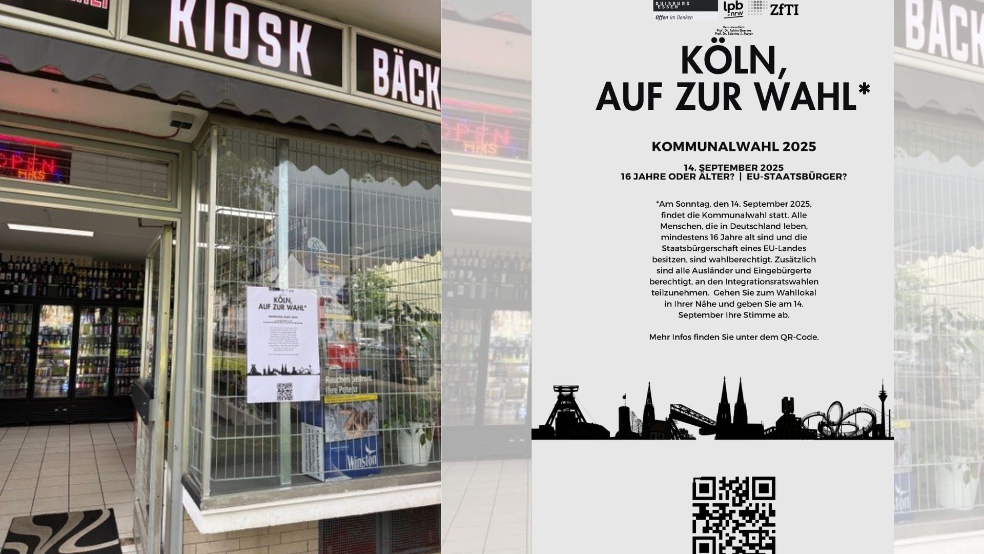 Das Aufhängen dieses Plakats für etwa sechs Wochen bis zum 14.9.25 war der erste Schritt der Intervention. Darüber hinaus wurden alle teilnehmenden Kioskbesitzer um ihr Foto gebeten, welches das Forschungsteam dann prominent in das Plakat einbaute. Kioskbesitzer, die das Plakat ohne eigenes Bild bis zum 14.9. hängen ließen, bekamen 20 Euro Aufwandsentschädigung, diejenigen mit eigenem Bild 50 Euro.